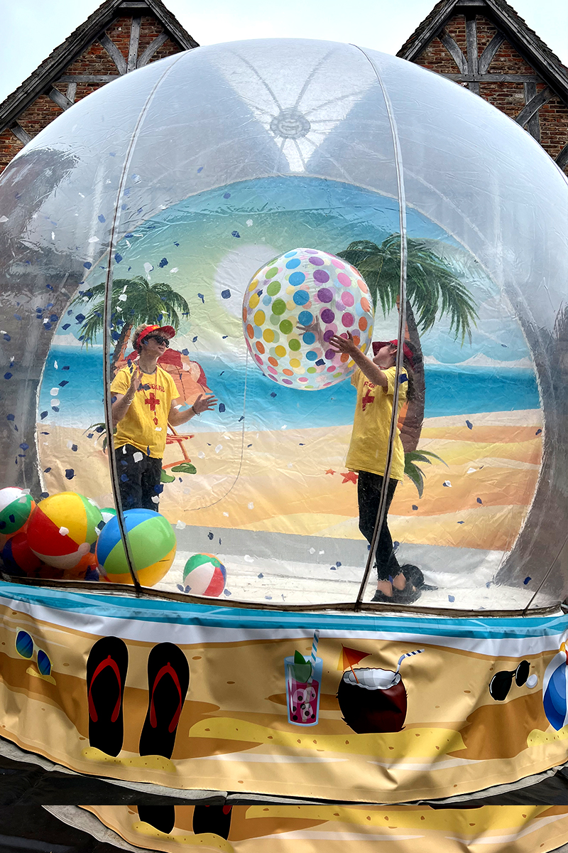 A brilliant twist on the miniature snow globes which shook snow onto any tiny landscape. You can now bring this nostalgic piece of magic into stunning life-size reality with a summer theme.